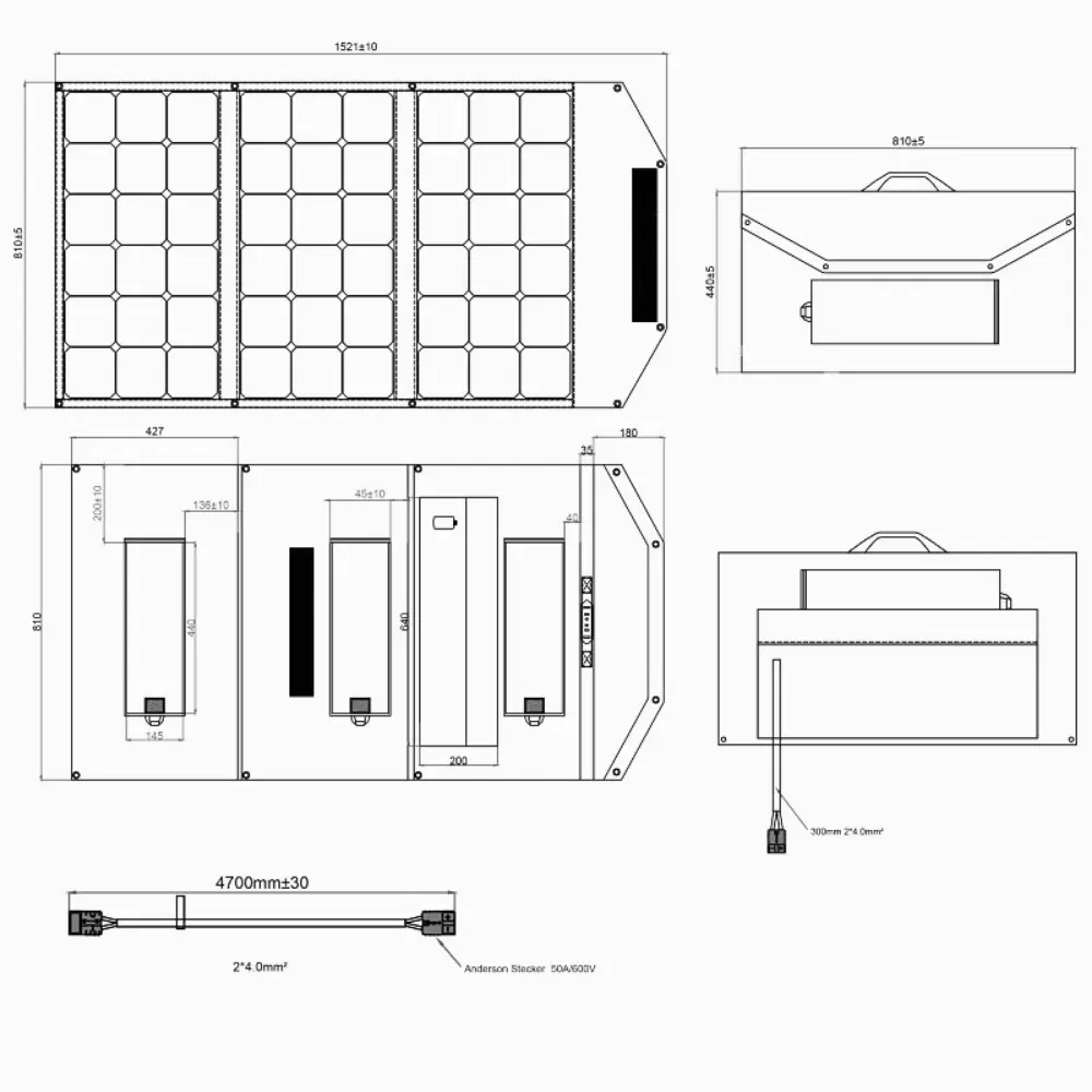 Die SOLA Ease Solartasche von Wattstunde ist mit einem 4,7 m langen Anschlusskabel und einem Anderson-Stecksystem ausgestattet. Du kannst den Anschluss dauerhaft am Laderegler lassen und bei Bedarf die Solartasche herausholen, in die Sonne legen und die Stecker verbinden. So einfach ist das.