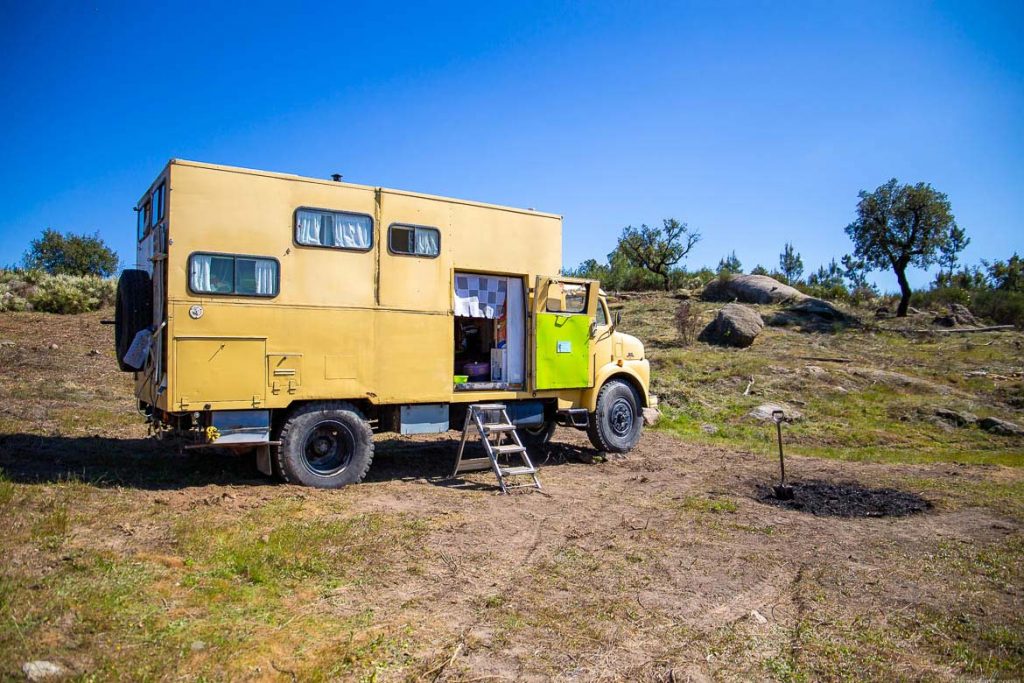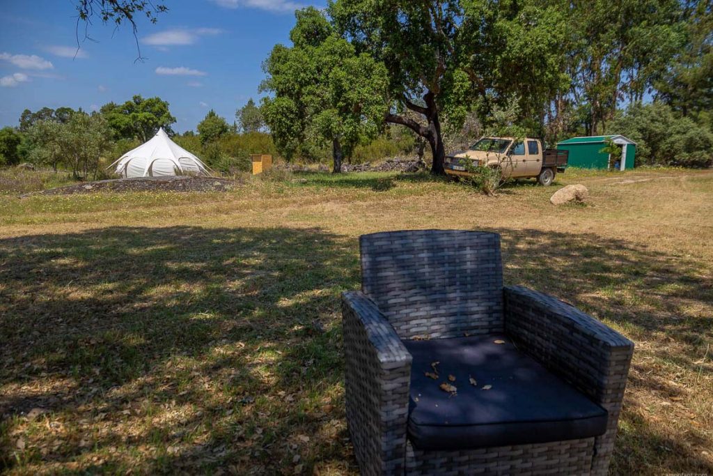 Die Platzauswahl war direkt nach der Ankunft im August 2020 nicht gerade groß. Der meiste Teil des Grundstücks war noch mit Zistrosen und Ginstern überwuchert, sodass wir für uns eine kleine freie Terrasse auswählten, wo wir gerade so drauf passten.